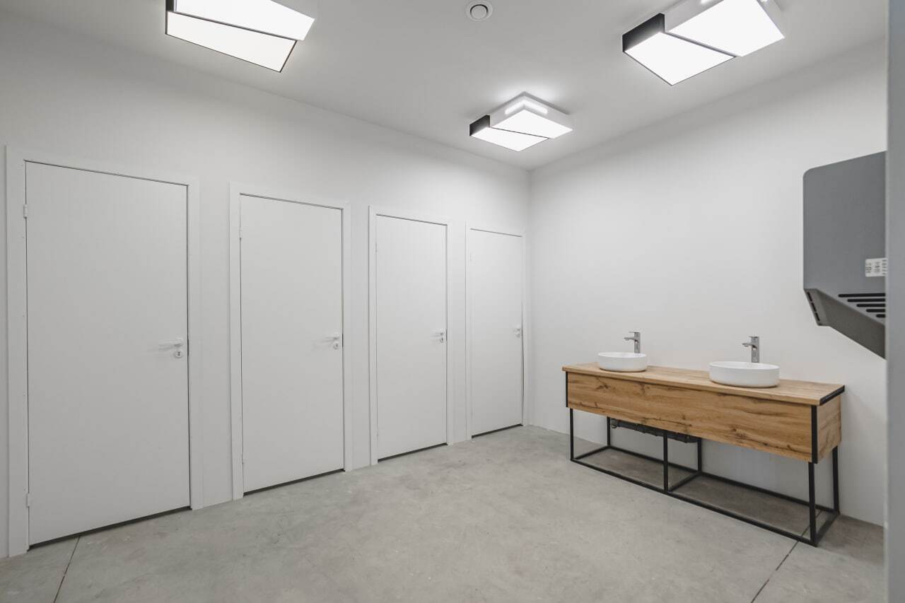 Санузел: 9 кабинок (5 в женской секции, 4 в мужской)