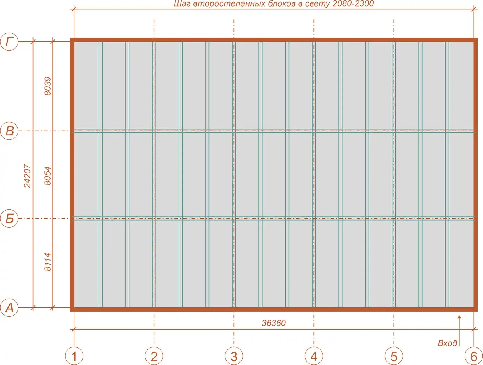 Дежурное освещение на потолке, днём- естественное через оконные проёмы